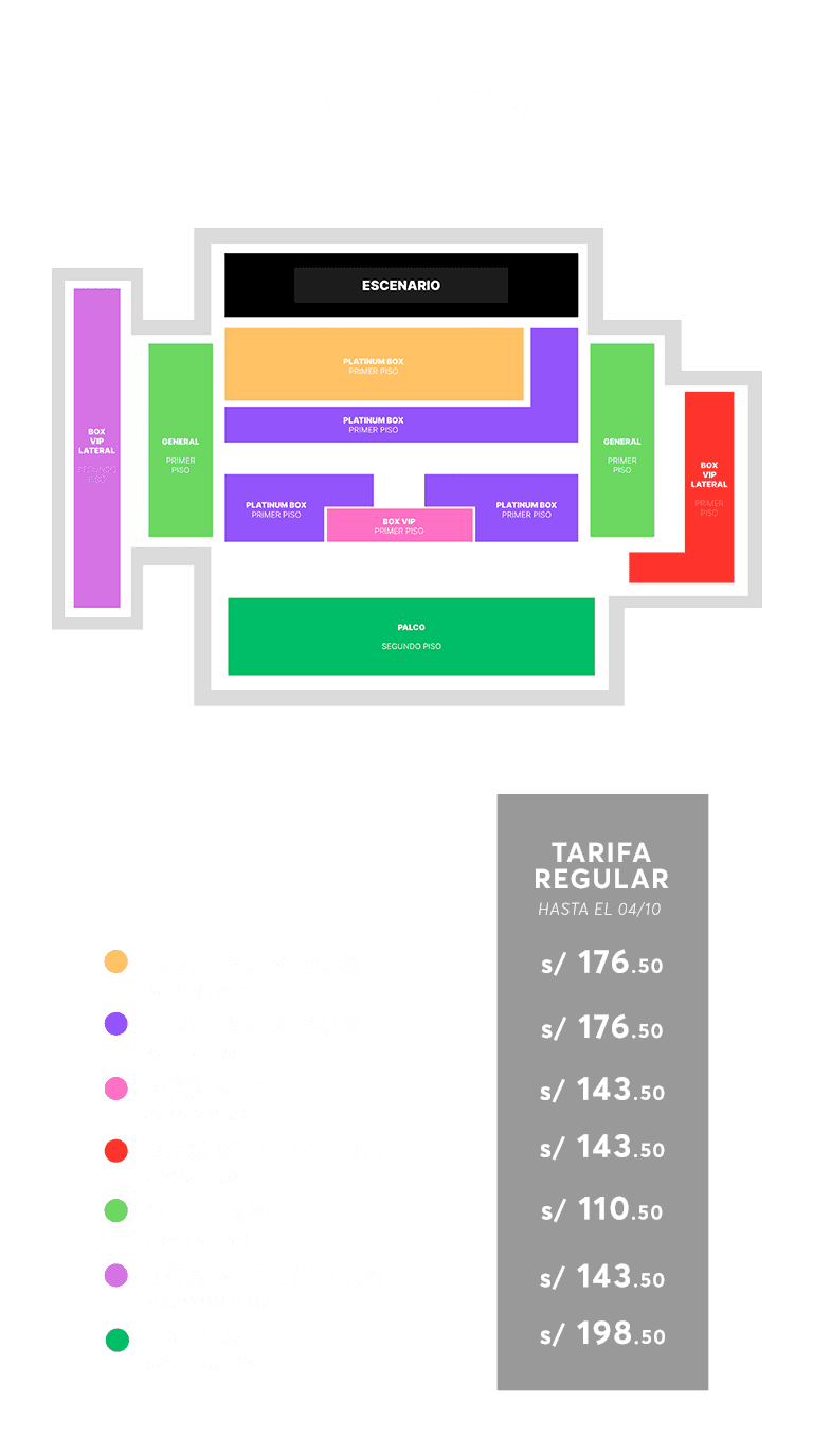 - Día del concierto: 04 de Octubre - 09:00pm.
