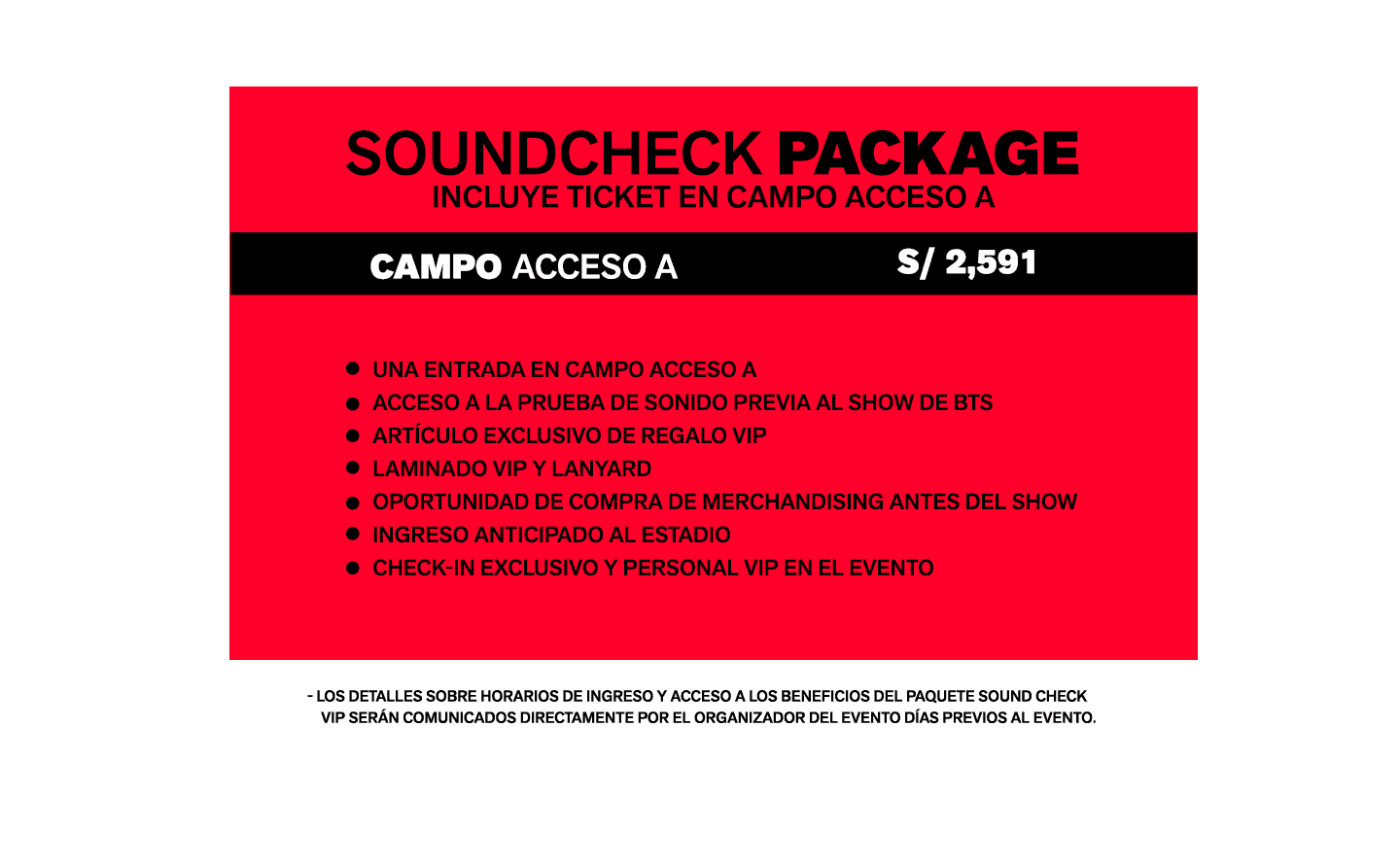 - Acceso a la prueba de sonido previa al show de BTS