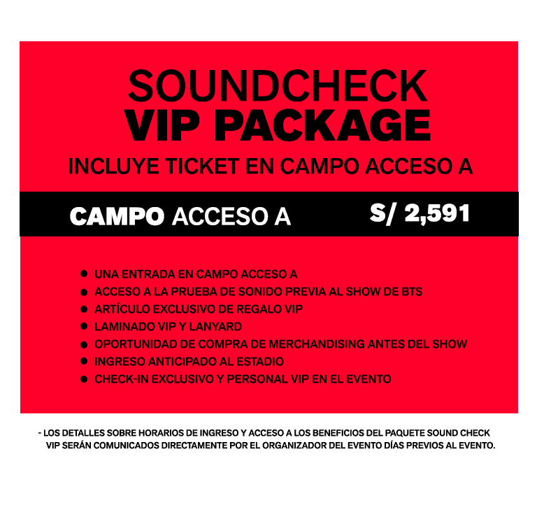 - LATIN AMERICA SOUNDCHECK VIP PACKAGE * 1 entrada en Zona Campo