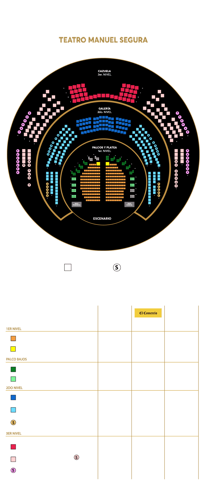 - Palcos: El precio de los palcos detallados, son tarifas individuales y pueden ser compartidos
