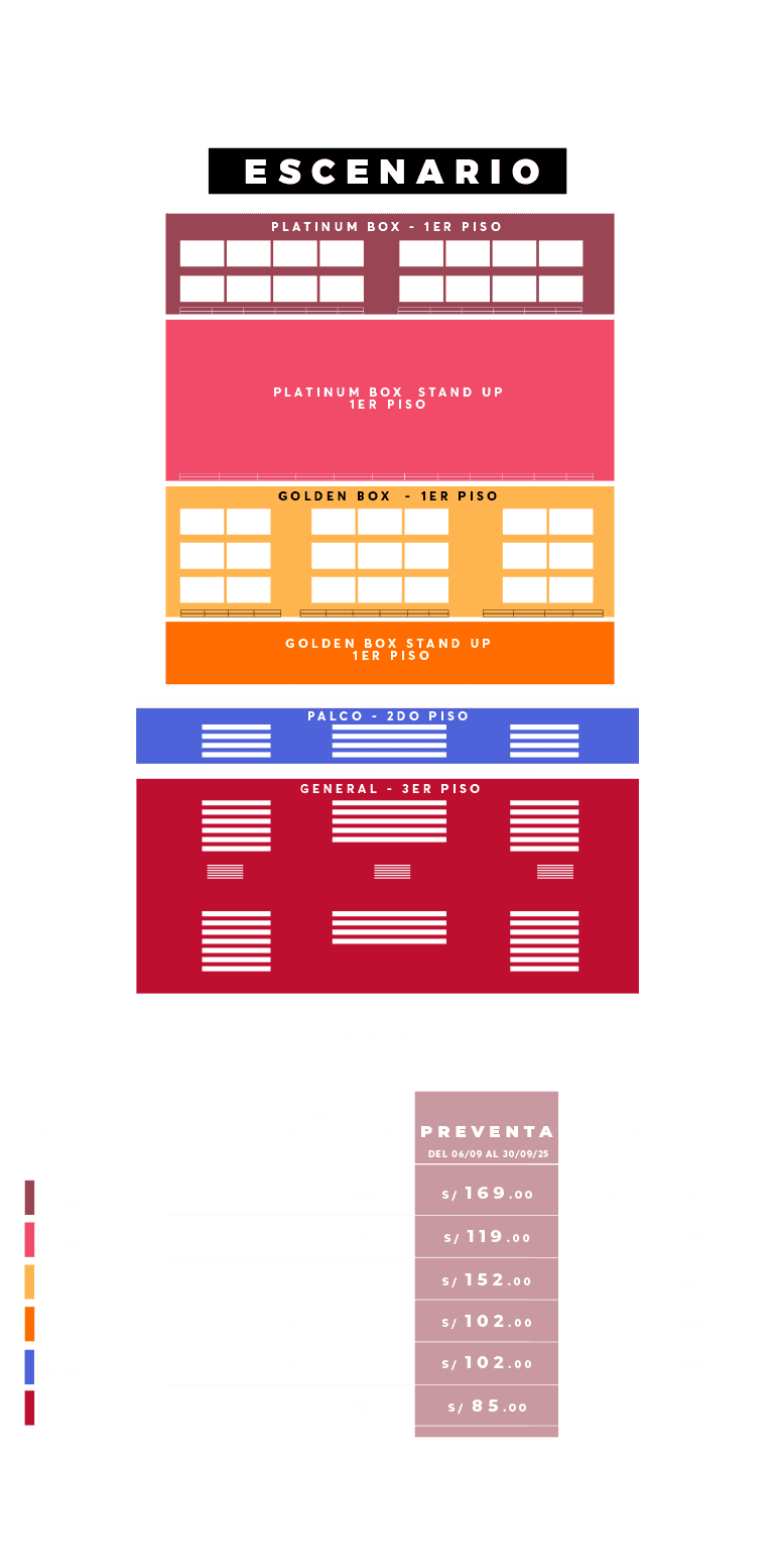 - De acuerdo con la Ley N° 29973, las personas con discapacidad debidamente acreditadas podrán acceder a un descuento para la compra de su entrada. Este descuento es válido únicamente para una (01) entrada por usuario, de carácter personal e intransferible. Para solicitarlo y conocer más sobre el procedimiento, ingresa aqui