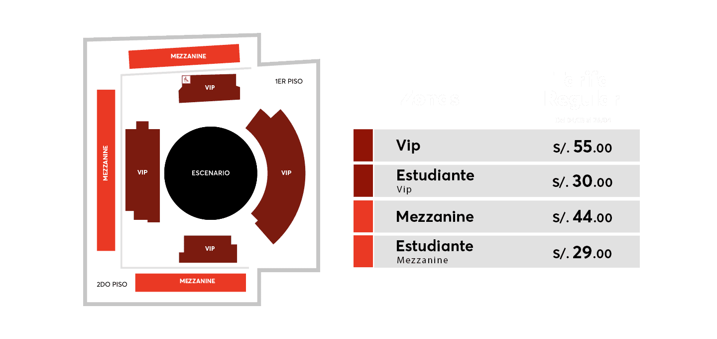 - Tarifa preventa: Disponible para funciones de enero. Preventa disponible hasta el 15/01