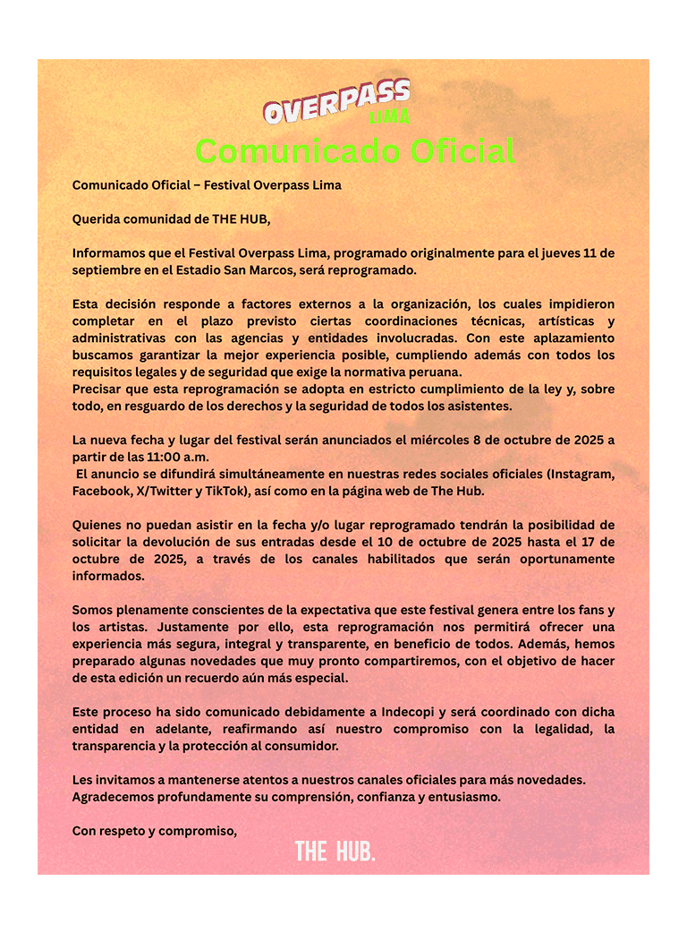 - Día del concierto: 11 de setiembre de 2025 - 7:00 pm.