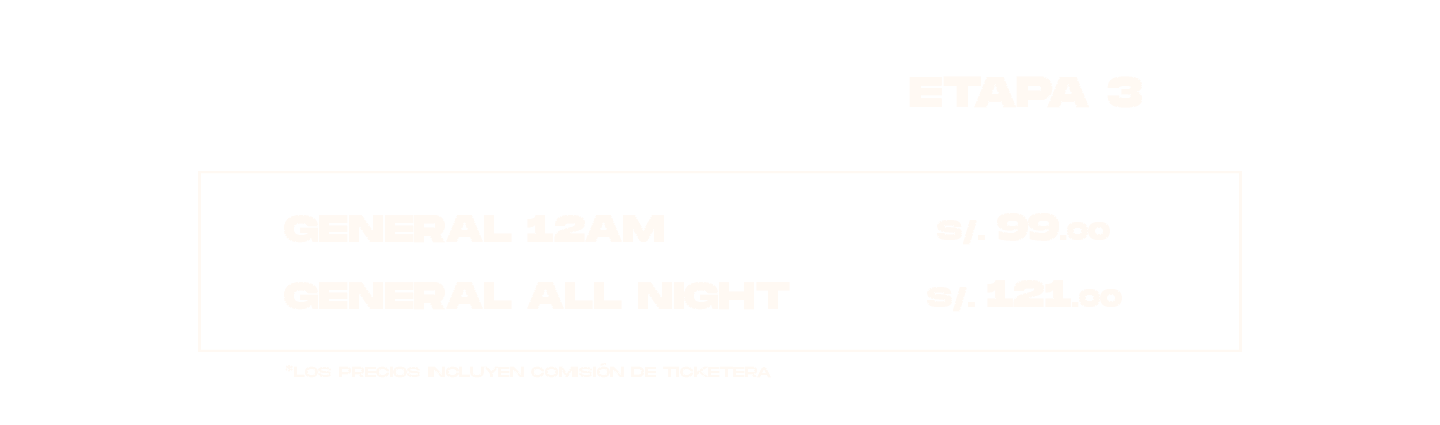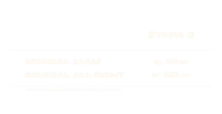 - Precios incluyen comisión de ticketera.