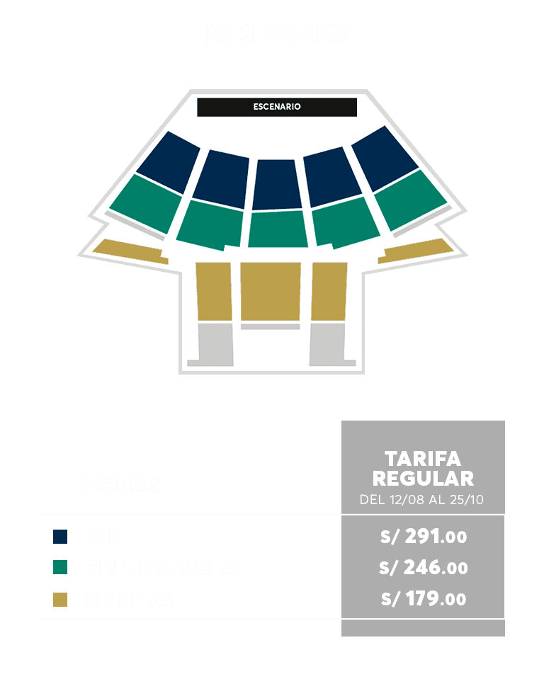- Precios incluyen comisión de ticketera.