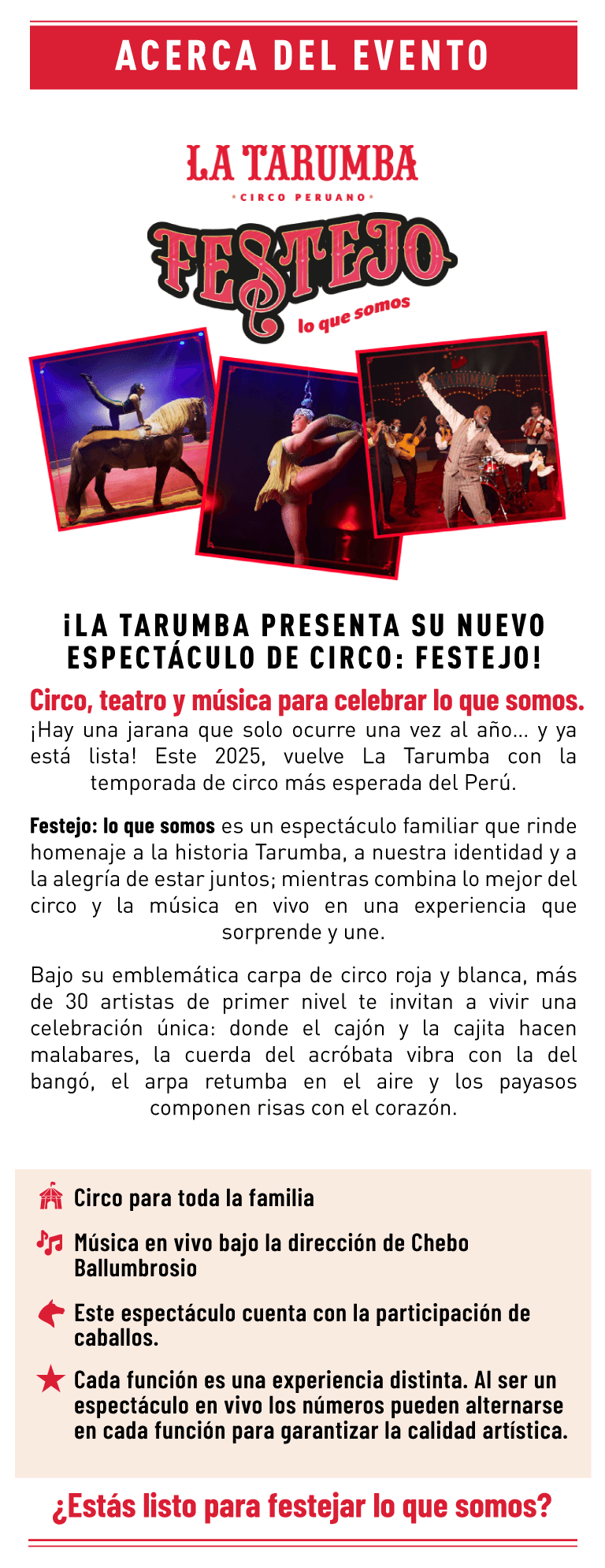 - Precios incluyen comisión de ticketera.