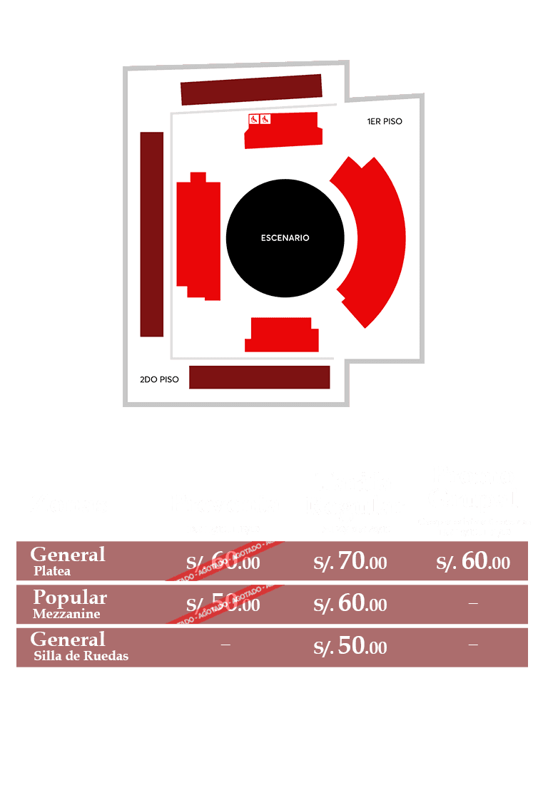- De acuerdo con la Ley N° 29973, las personas con discapacidad debidamente acreditadas podrán acceder a un descuento para la compra de su entrada. Este descuento es válido únicamente para una (01) entrada por usuario, de carácter personal e intransferible. Para solicitarlo y conocer más sobre el procedimiento, ingresa a Fan Support