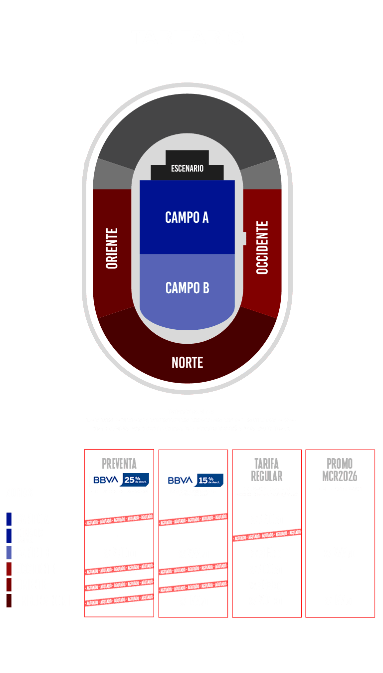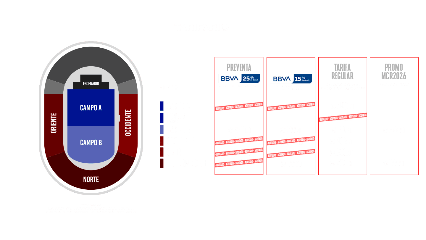- Compra máxima por persona: 6 tickets preventa BBVA y 6 tickets en venta general