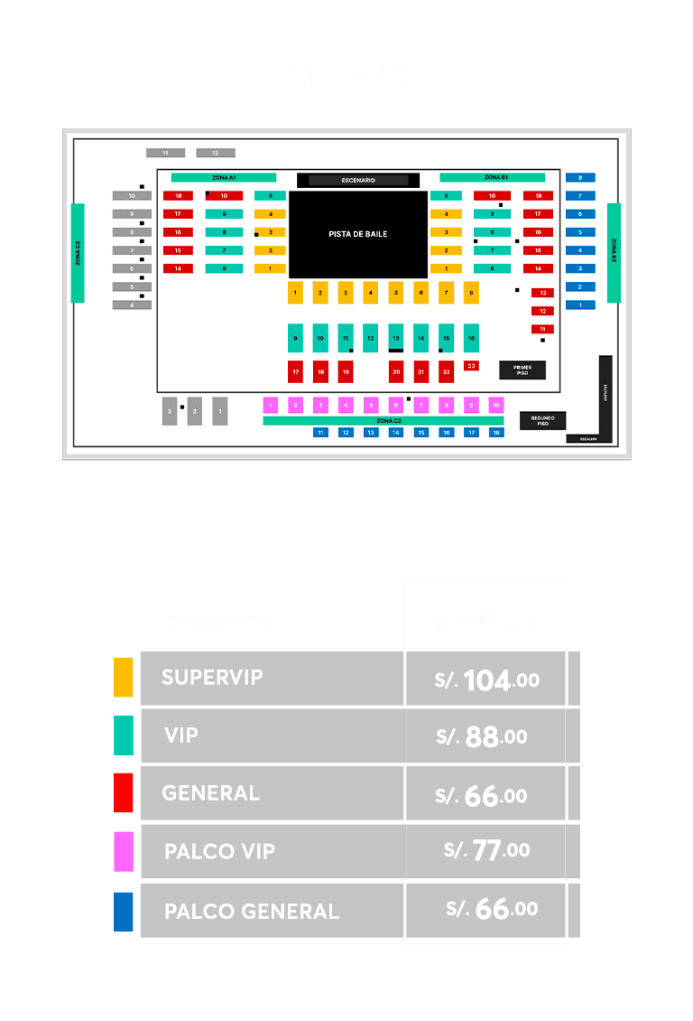 - La apertura de puertas se realiza a las 8:00 p.m. El espectáculo comienza puntualmente a las 9:00 p.m. y finaliza a las 2:00 a.m