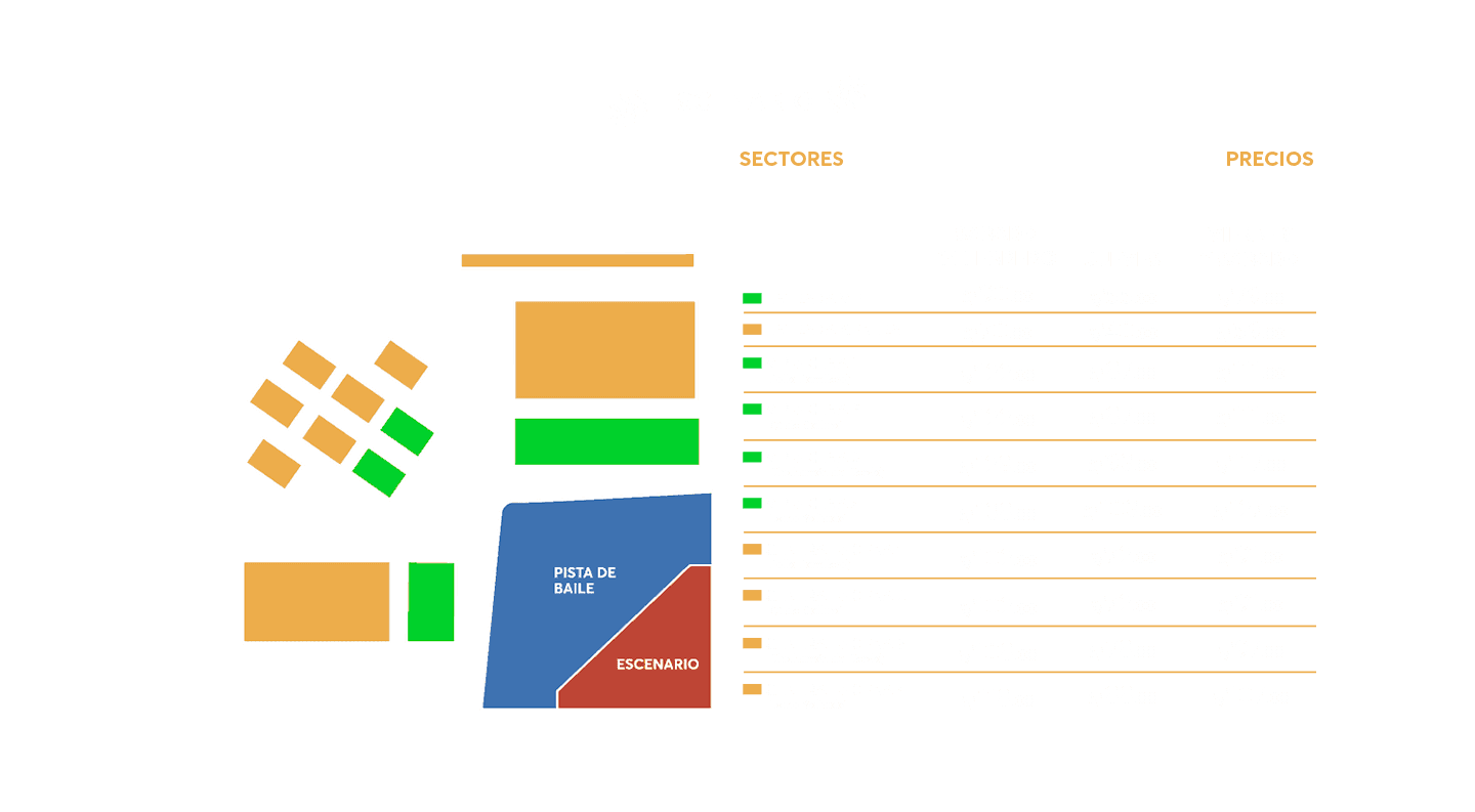 - Precios incluyen comisión de ticketera.