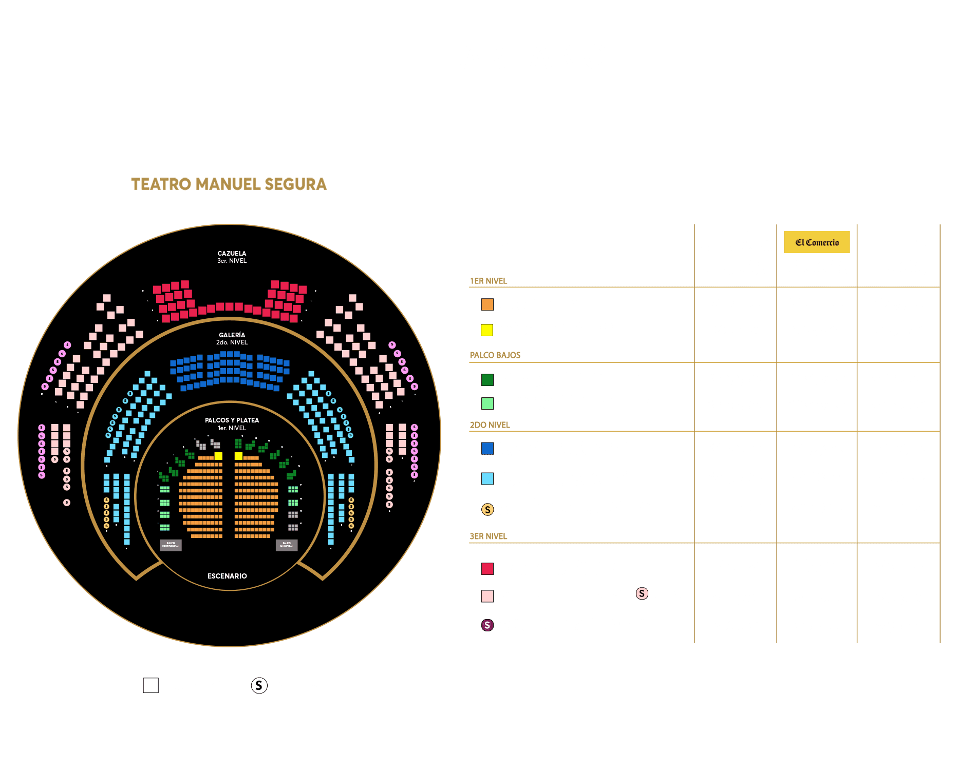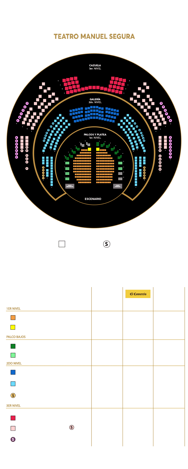 - Palcos: El precio de los palcos detallados, son tarifas individuales y pueden ser compartidos
