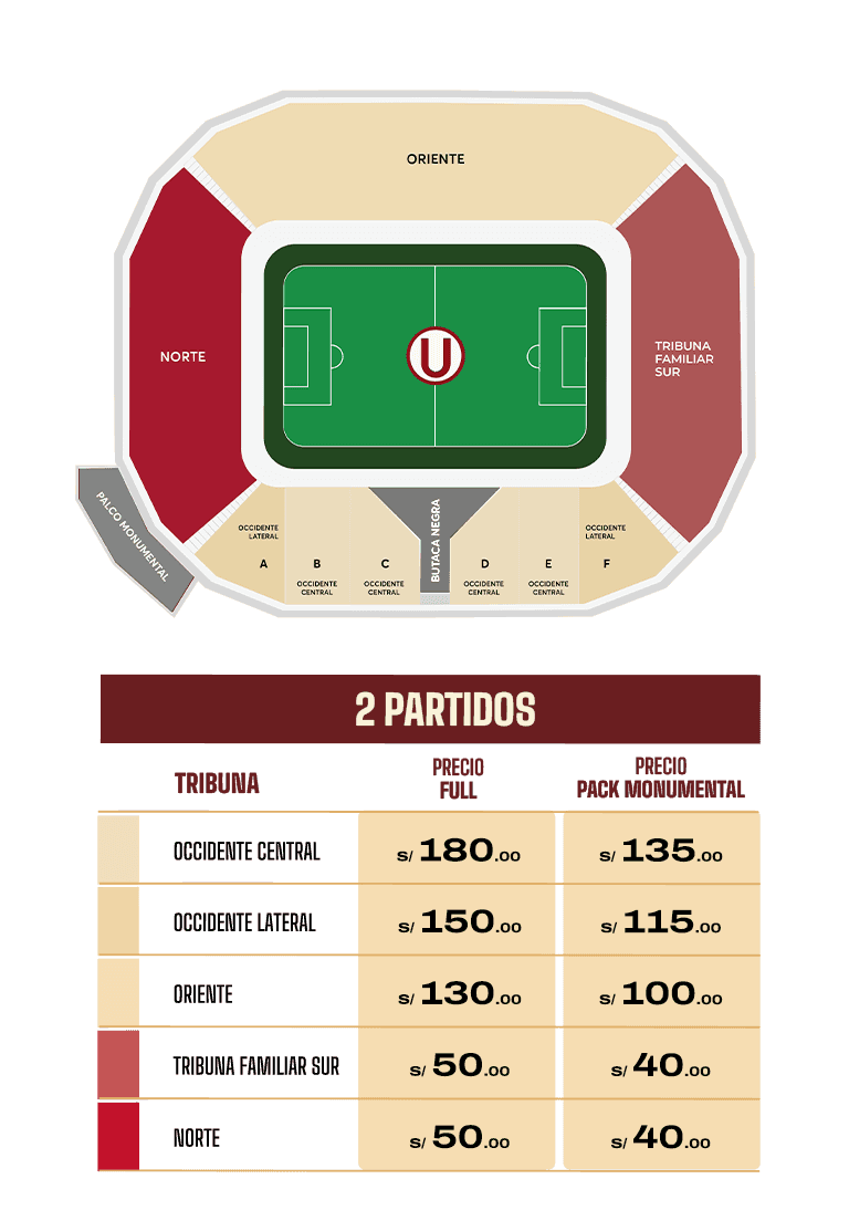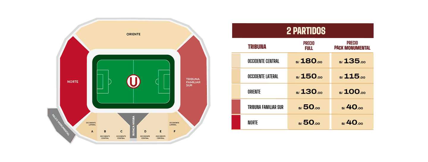 Máx. 2 Pack por usuario (Aplica para todos). Venta con aforo limitado por tribuna, hasta agotar stock. Las promociones 2x1 (adherentes en Oriente y cremas en todas las tribunas), se aplican para ambos partidos.