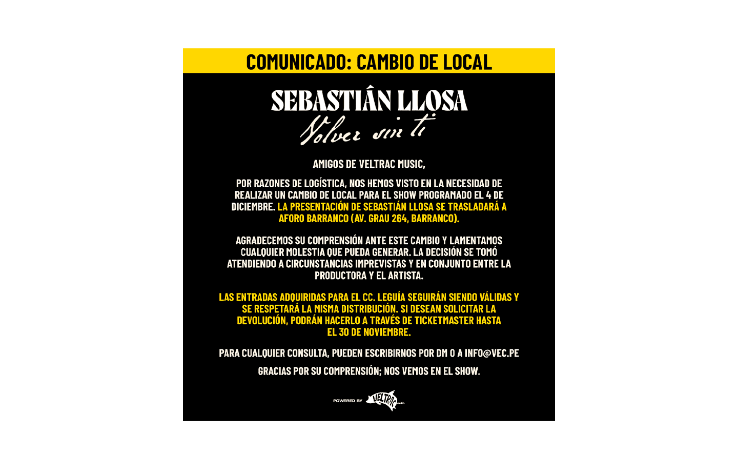 ORGANIZADOR DEL EVENTO: VELTRAC ENTRETENIMIENTO Y COMUNICACION SAC