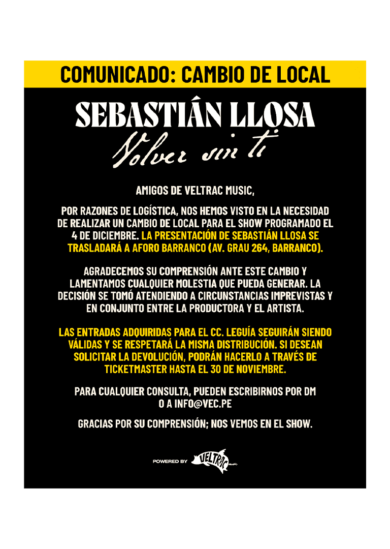 Sebastián Llosa, uno de los exponentes peruanos más importantes del pop latino, vuelve a Lima para presentarse en solitario por primera vez este 04 de diciembre para presentarse en el CC Leguía.