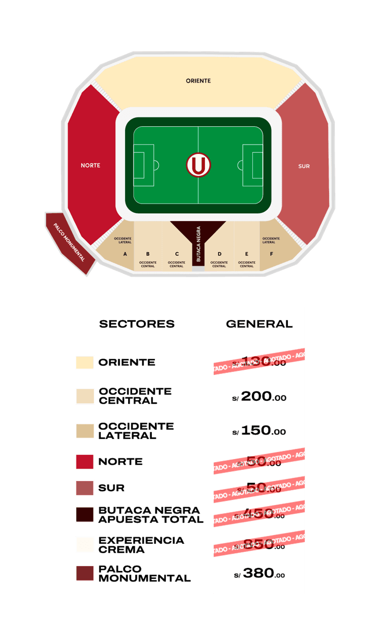 - De acuerdo con la Ley N° 29973, las personas con discapacidad debidamente acreditadas podrán acceder a un descuento para la compra de su entrada. Este descuento es válido únicamente para una (01) entrada por usuario, de carácter personal e intransferible. Para solicitarlo y conocer más sobre el procedimiento, ingresa a: Fan Support
