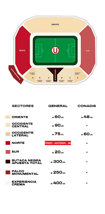 - La tarifa CONADIS solo será válida para aquel usuario que presente su carné CONADIS o certificado de discapacidad, al ingresar al estadio.