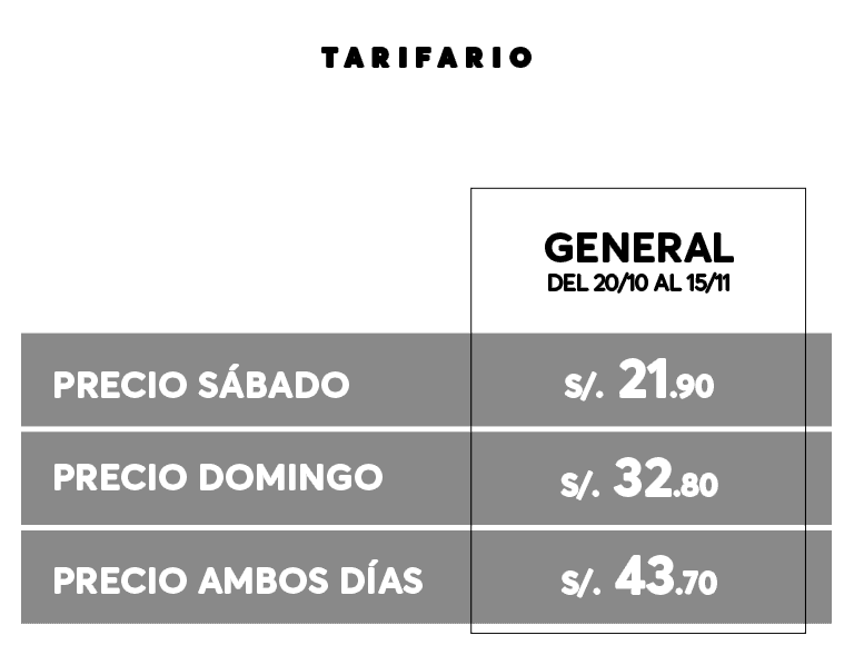 - Precios incluyen comisión de ticketera.